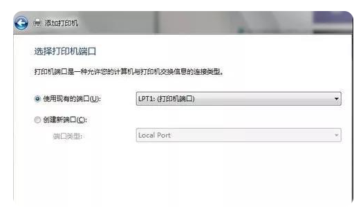 4、选择打印机端口,一般为默认的lpt1:(打印机端口)。