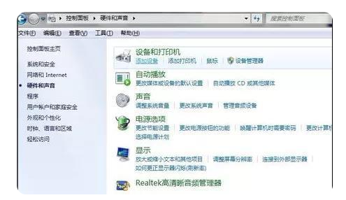 2、打开电脑的控制面板,进入硬件和声音选项,查看设备和打印机。