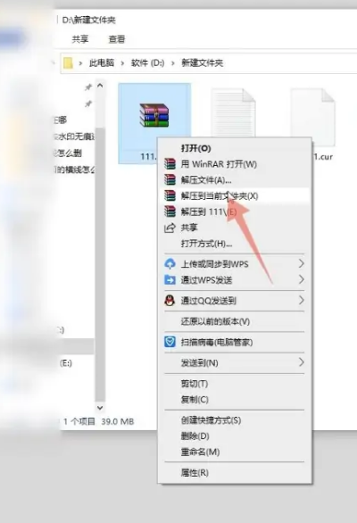 2、选择解压到当前文件夹。