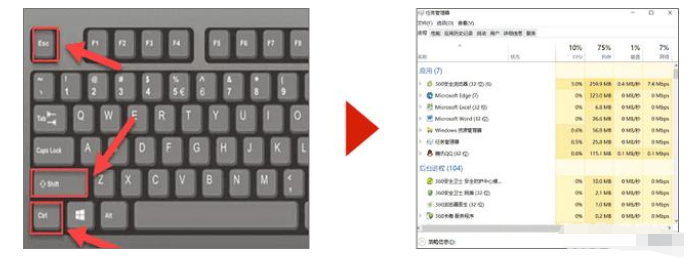 1. 使用组合快捷键Ctrl+Shift+Esc启动任务管理器。