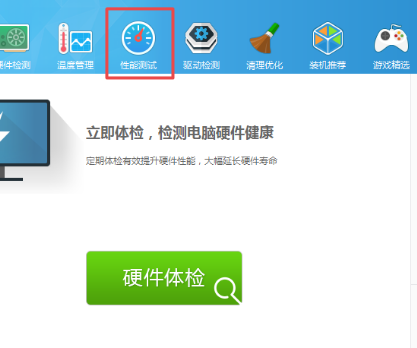 2、软件的主界面上找到最上方的【性能测试】功能,点击进入。