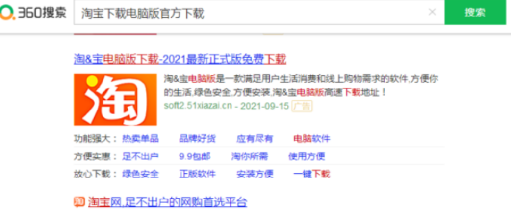 1、打开浏览器,搜索“淘宝下载电脑版”。