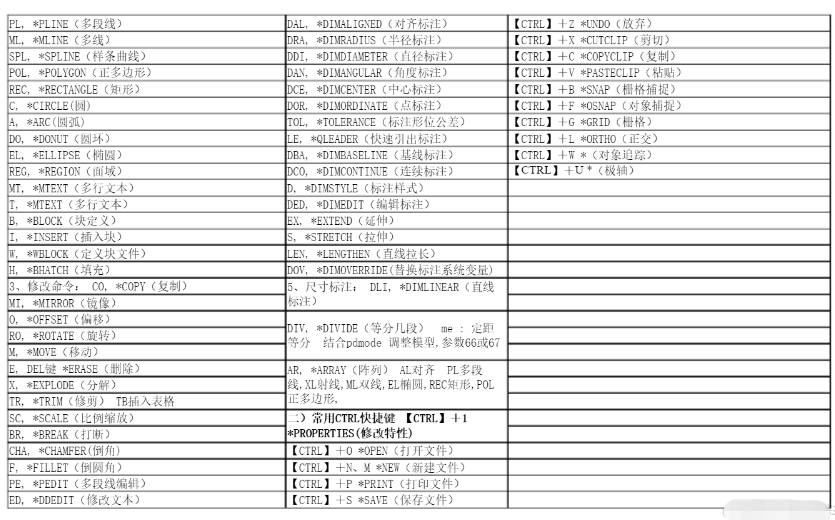 最全的cad快捷键命令大全