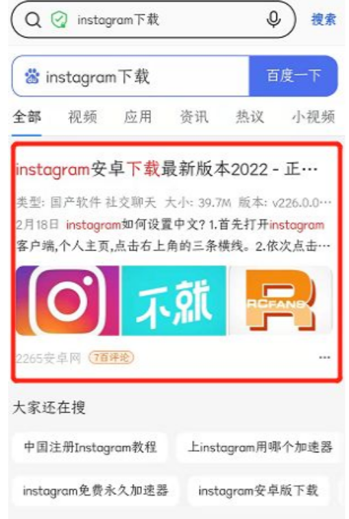 1、打开手机浏览器,点击搜索输入【instagram下载】。