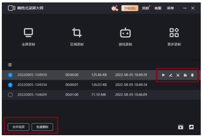 4、录制结束后,可以对视频进行剪辑、合并、删除等系列操作。