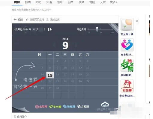 1、首先去百度搜索“安全期计算器”。