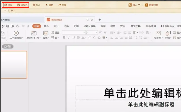 4、课件制作完成后,点击“保存”或者“保存为”即可。