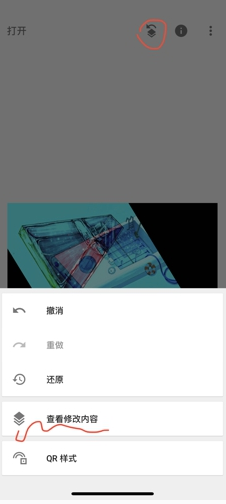 7.完成之后我们点一下右下角的勾保存并返回到主界面,点一下右上角的第一个按钮,再选择“查看修改内容”。