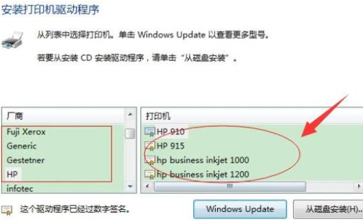5、我们根据打印机厂商,选择打印机型号。