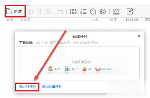 3、在弹出的新建任务框中,点击左下角的“添加BT任务”。4、然后从本地导入预先下载的BT文件,等待迅雷成功识别该种子文件,选择需要下载的内容(一般种子中包含其他无关文件,取消勾选即可),接着点击立即下载按钮。5、随后耐心等待下载进程、由于BT文件一般下载速度较慢,离线空间预先载入可以得到改善,或者也可以使用高速通道加速获得加速。