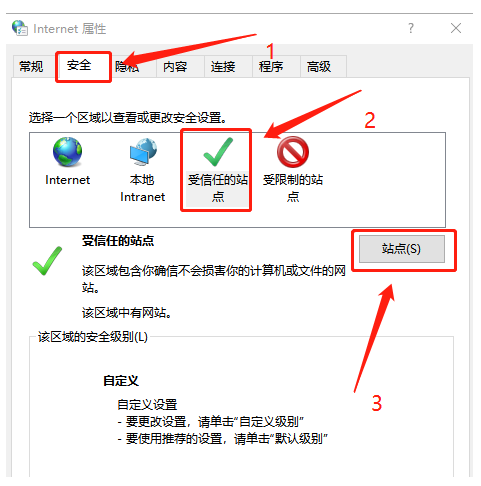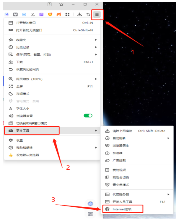 1、首先在电脑上打开360安全浏览器,点击页面右上角的三根横线图标,在弹出的选项中,选择“更多工具”一栏的“Internet选项”。2、随后在弹出的Internet属性窗口中,选择“安全”选项中的“受信任站点”图标,然后点击“站点”按钮。