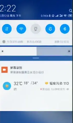 1、从上向下滑动屏幕,再向下滑动中间的横杠。