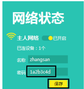 1、进入管理界面后,在右侧修改无线密码,点击保存,新的无线密码立即生效。