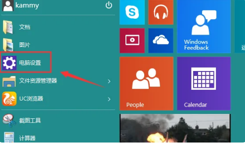 步骤一:首先我们在电脑开始页面找到电脑设置。