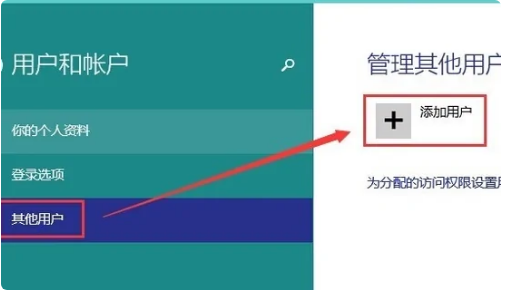 步骤三:点击用户和账户之后,点击其他用户,接着单击右侧的添加用户即可。