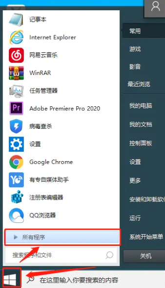 1、点击电脑左下角的“开始”图标,打开所有程序。