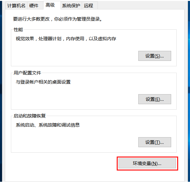 2、在屏幕弹出的“系统属性”窗口中“高级”标签页下点击“环境变量”即可。