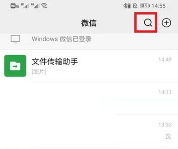 1、打开微信然后点击右上角的“ 放大镜 ”,输入“ 群发助手 ”,再点击该功能。