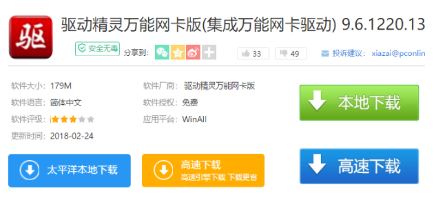 软件版本:驱动精灵万能网卡版