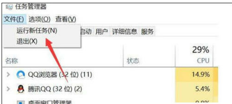 3、在任务管理器左上方点击文件,选择新建运行任务。