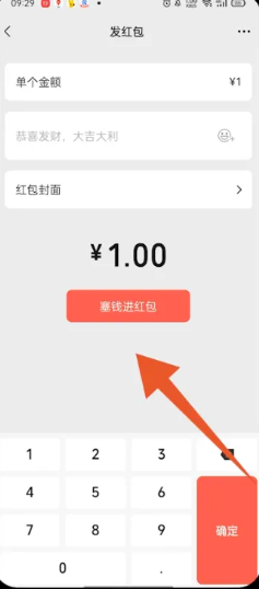 3、在里面输入退还的金额,接着点击塞钱进红包,即可退还红包给对方。