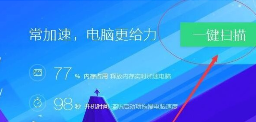 4、 如果想要进一步加快电脑开机速度,也可以点击“一键扫描”清理电脑