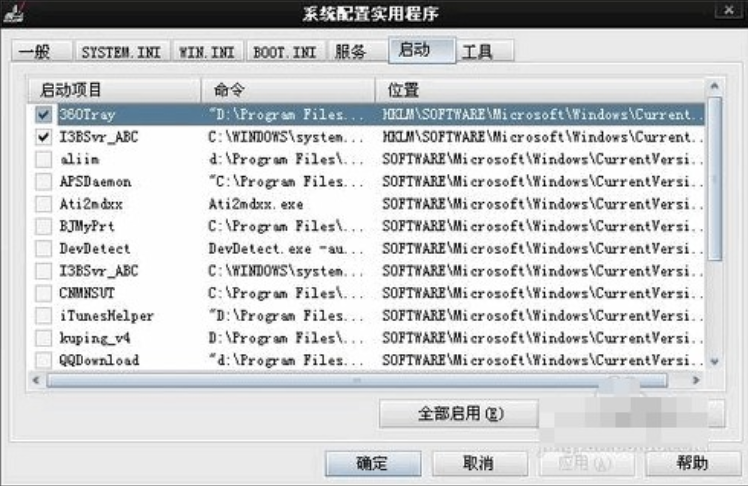 3、 接着,你就可以根据自己的需要,来启用和禁用window开机启动项了