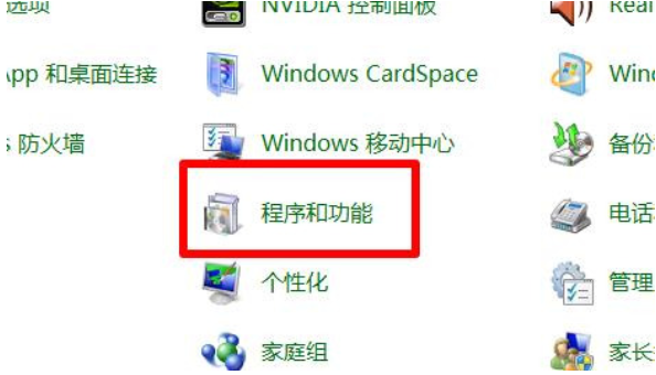 2.在控制面板中打开“程序和功能”;