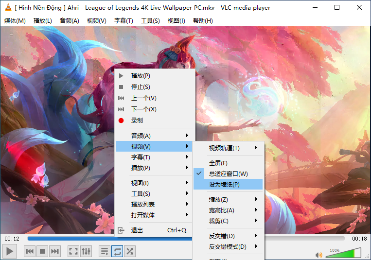 虽然 VLC 媒体播放器提供了设置视频为墙纸的功能,但是自己在测试使用的时候方便该功能并不是特别好用,因为它无法正常看到桌面上的图标,并不推荐使用。
