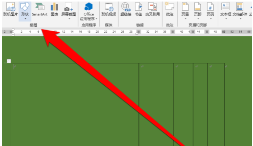 2、点击word顶部菜单栏界面的插入,选择形状进入。