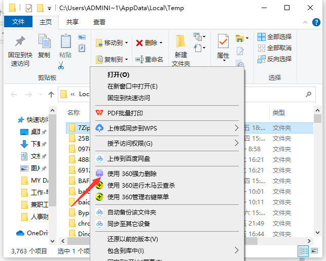 3、有些顽固的无法删除的文件,如果安装了电脑管家或者360安全卫士的,可以选择强制粉碎文件即可。