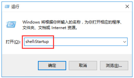 3、打开运行菜单,输入“shell:Startup”命令。