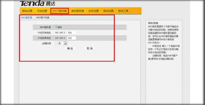 进入路由器管理界面,点击【DHCP服务器】,完善以下信息,填写后点击确定即可。