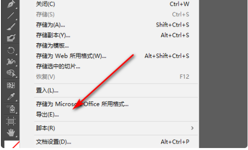 2、用AI打开EPS之后,鼠标点击文件中的导出。