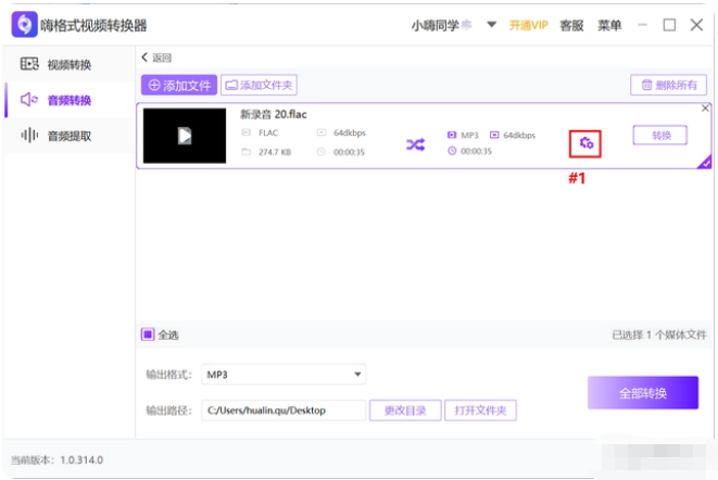 2、进入下一页面后,上传我们需要转换的flac格式文件,添加成功之后设置音质、转换格式等参数(鼠标点击 #1 部分设置参数);