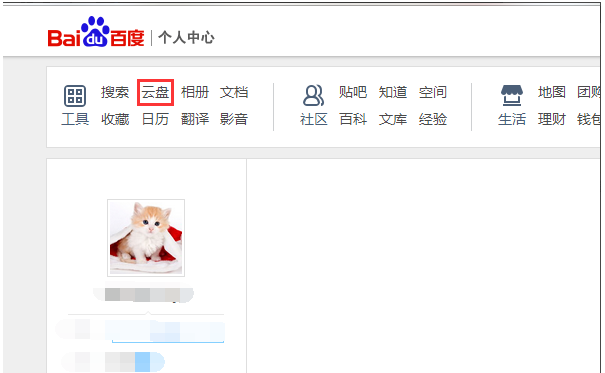 3、在个人中心中很多百度的功能都可以找到,我们找到“云盘”,点击进入。