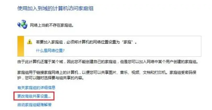 2、在接下来的窗口界面中,选择更改高级共享设置。