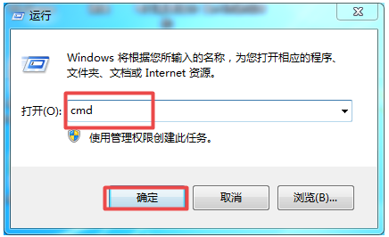 1、首先使用win+R快捷键打开【运行】,输入【cmd】命令,点击【确定】。