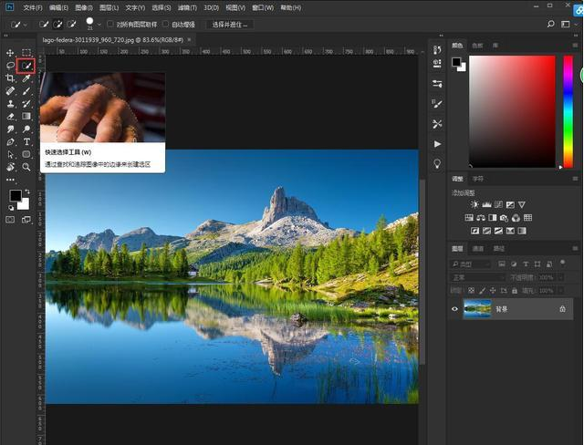 1、接下来再说下ps蒙版抠图的方法。在ps中导入需要处理的图片,选择快速选择工具。