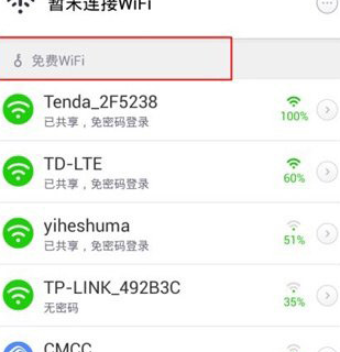 1、下载后点开软件,可以看到很多wifi,在免费wifi那栏点击wifi使用即可。