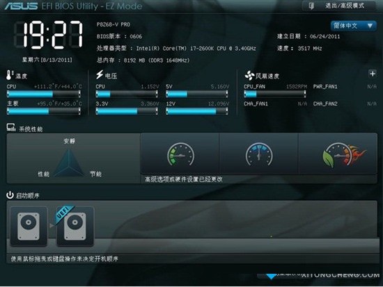 2、进入到bios界面后,就可以对bios系统进行设置了;