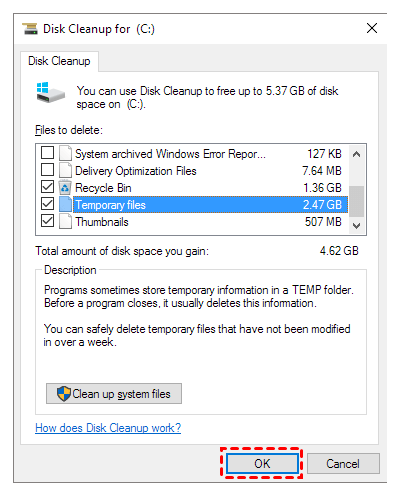 2、在“磁盘清理”窗口中,选择要删除的文件,然后单击“确定”。如果这没有释放太多空间,您可以单击清理系统文件按钮来删除系统文件。您可以删除以前的 Windows 安装(Windows.old 文件夹)、系统还原点、回收站和其他系统文件。