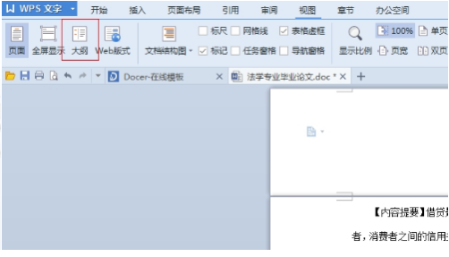 1、首先点击“视图”切换到“大纲”模式即可。