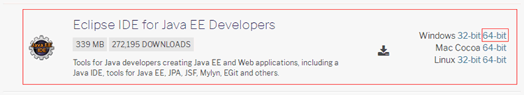 4、 点击 Download Packages,进入 Eclipse 下载页面。从 Eclipse IDE for Java EE Developers 后面选择适合当前系统的版本,这里单击 64 bit 按钮,下载 64 位的安装包,如图 3 所示。