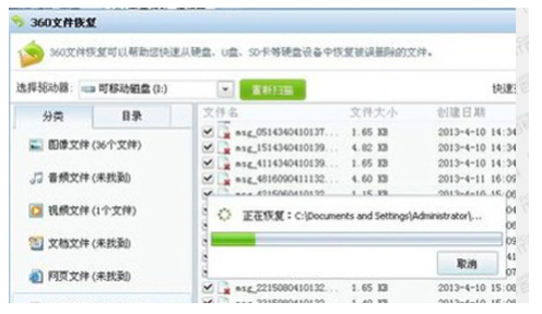 2.首先下载运行360文件恢复工具,在选择驱动器中选择手机盘符,点击开始扫描。扫描结束后将聊天记录到处到微信账户文件夹中。