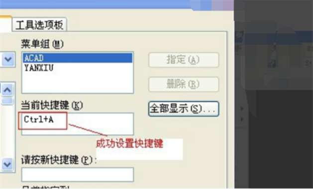 4、然后将成为当前快捷键,这样就设置成功了。