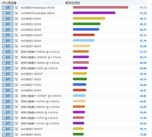 全新天梯cpu排行榜对比情况