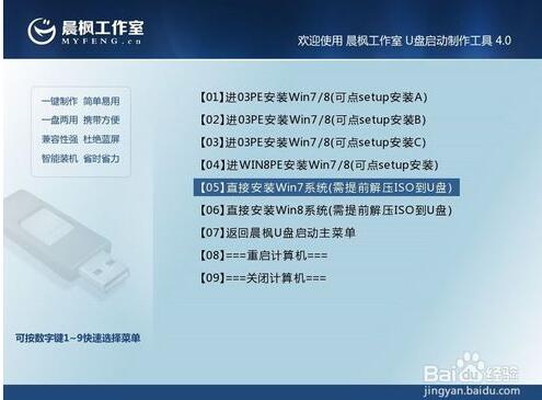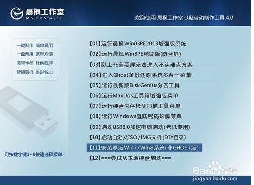 【4】用U盘启动电脑,选择菜单11,然后选择菜单5直接安装Win7操作系统。