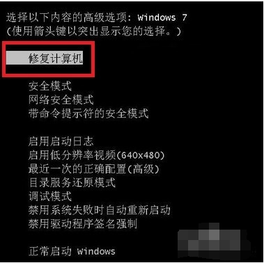 1,蓝屏后重新启动按住F8,进入操作选项,选择“修复计算机”