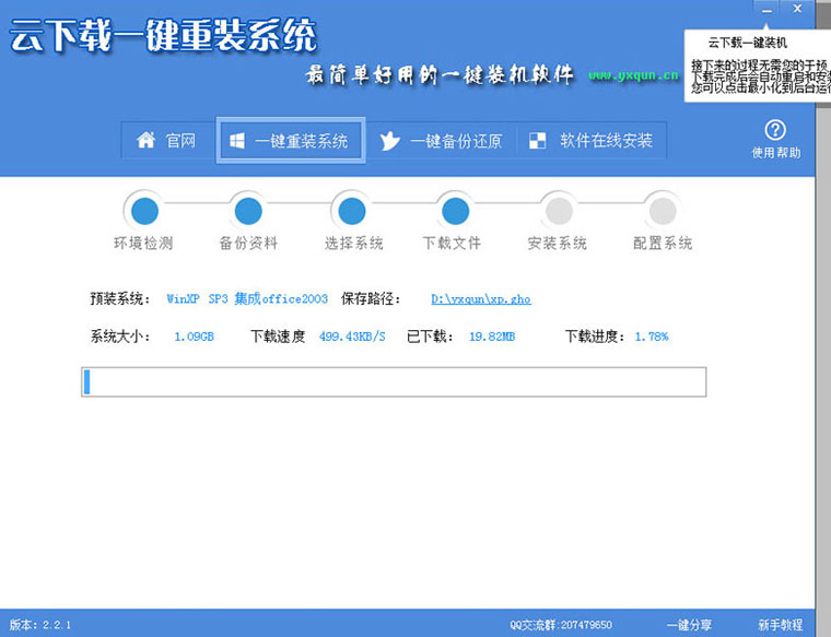 说到现在最受到大家欢迎的一键重装系统,当然就是我们熟知的云下载一键重装系统软件了。今天小编特意把云下载一键重装系统教程带给大家,让大家对云下载一键重装系统软件有一定的了解和认识,下面就是云下载一键重装系统教程。希望能帮助到大家。